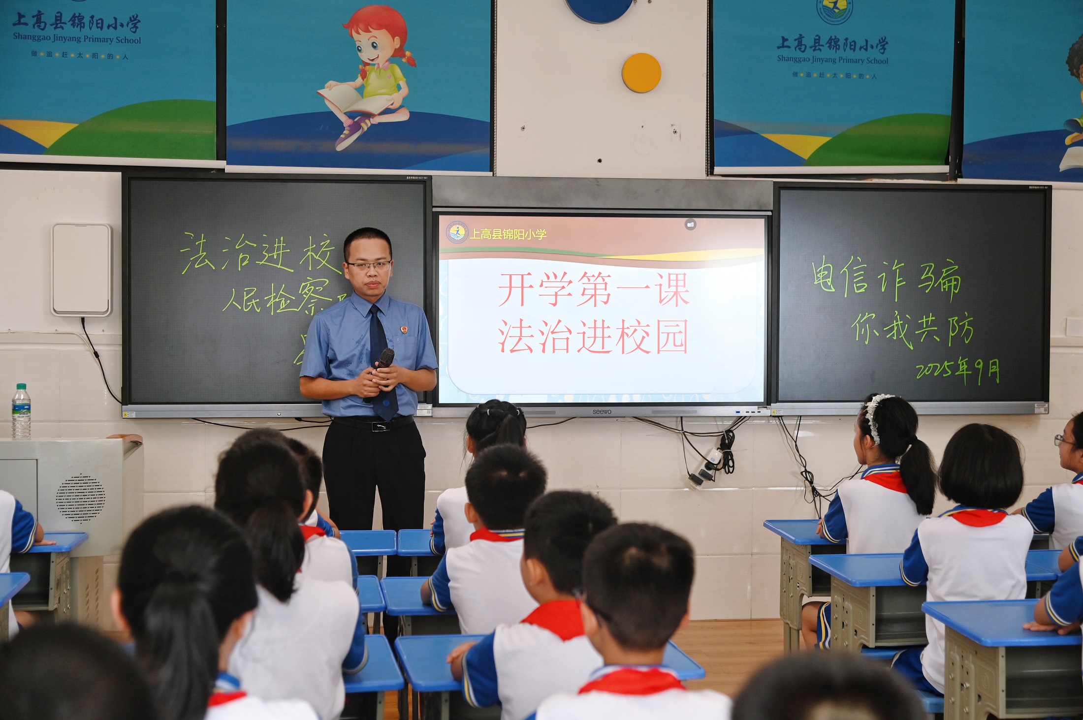 近日,上高县人民检察院的检察干警们走进锦阳小学,带着精心准备的电信反诈普法课,与同学们面对面交流,用生动案例和趣味互动,”为学生披上反诈 “安全衣”。