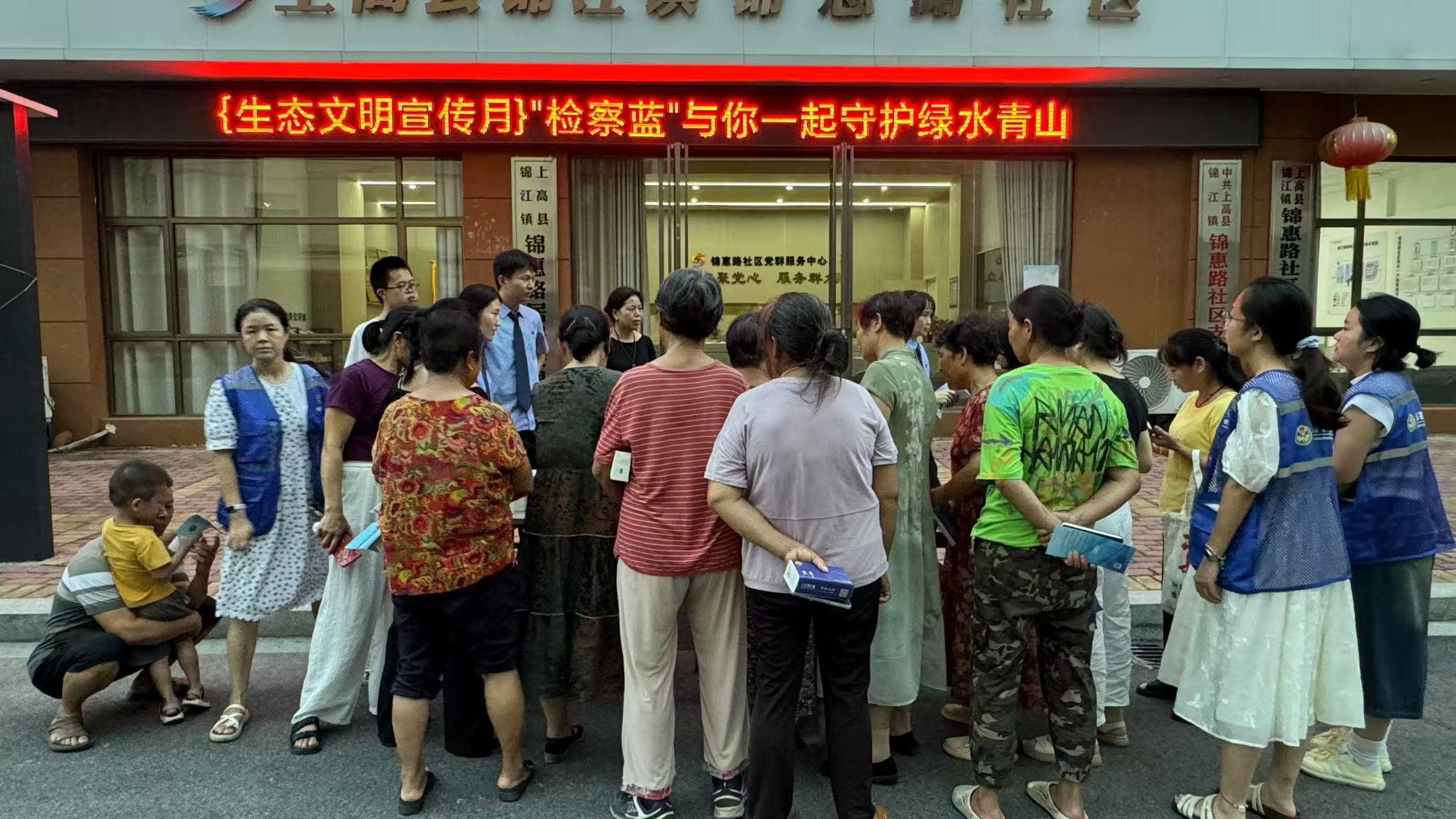 2025年8月是江西省第6个生态文明宣传月,为更好地推动公众参与生态文明建设,上高县检察院在上高花园广场附近组织“检察蓝”与你一起守护绿水青山现场活动。