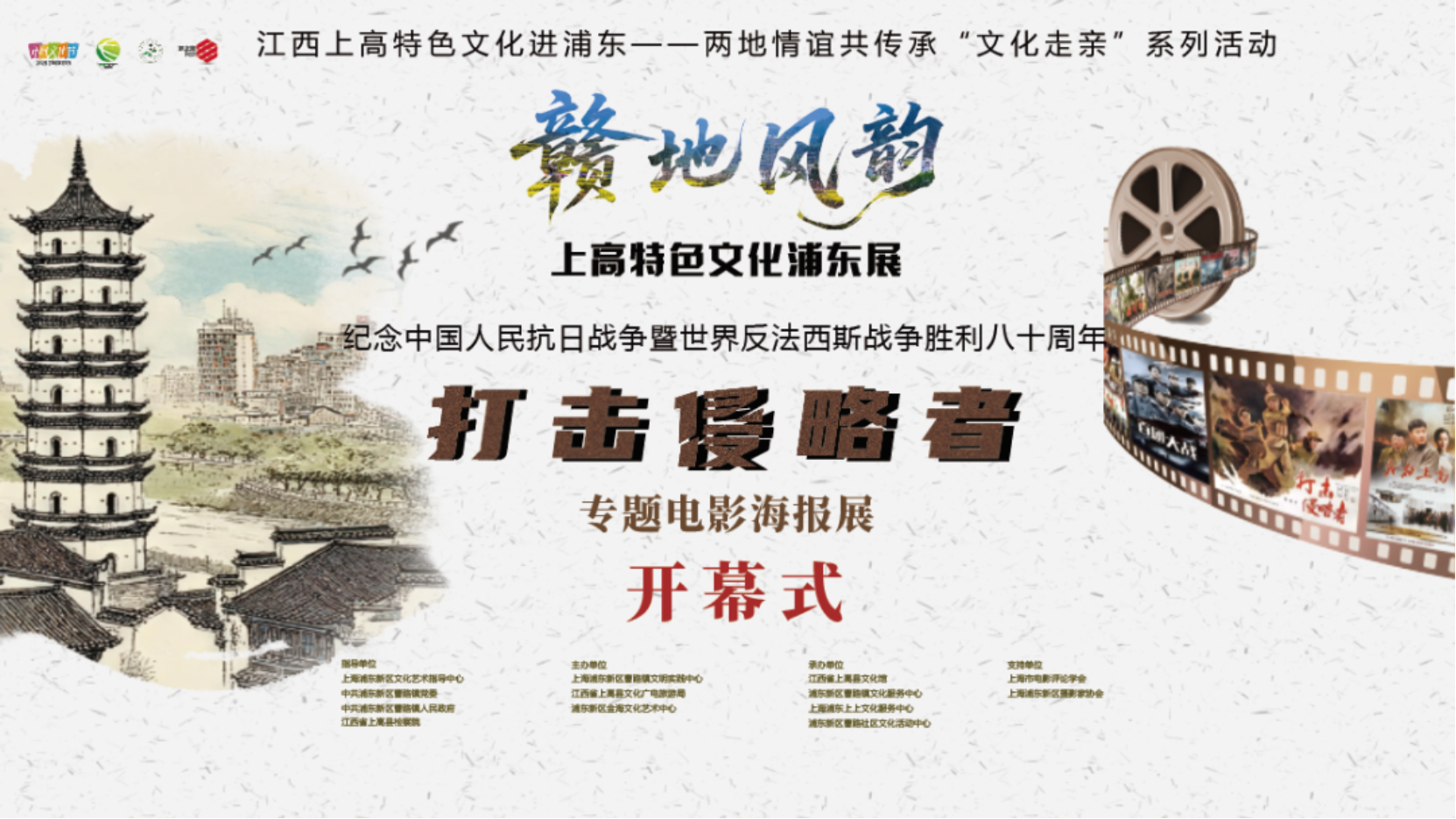 近日,“赣地风韵——上高特色文化浦东展”在上海金海艺术中心盛大启幕。作为纪念中国人民抗日战争暨世界反法西斯战争胜利80周年的重要献礼,由上高县人民检察院珍藏的《打击侵略者》专题电影海报展以80幅跨越七十余载的光影珍品,与上高农民摄影、版画、剪纸等80余幅乡土艺术作品共绽风华,为浦东市民带来一场融合历史厚重与乡土温情的文化盛宴。