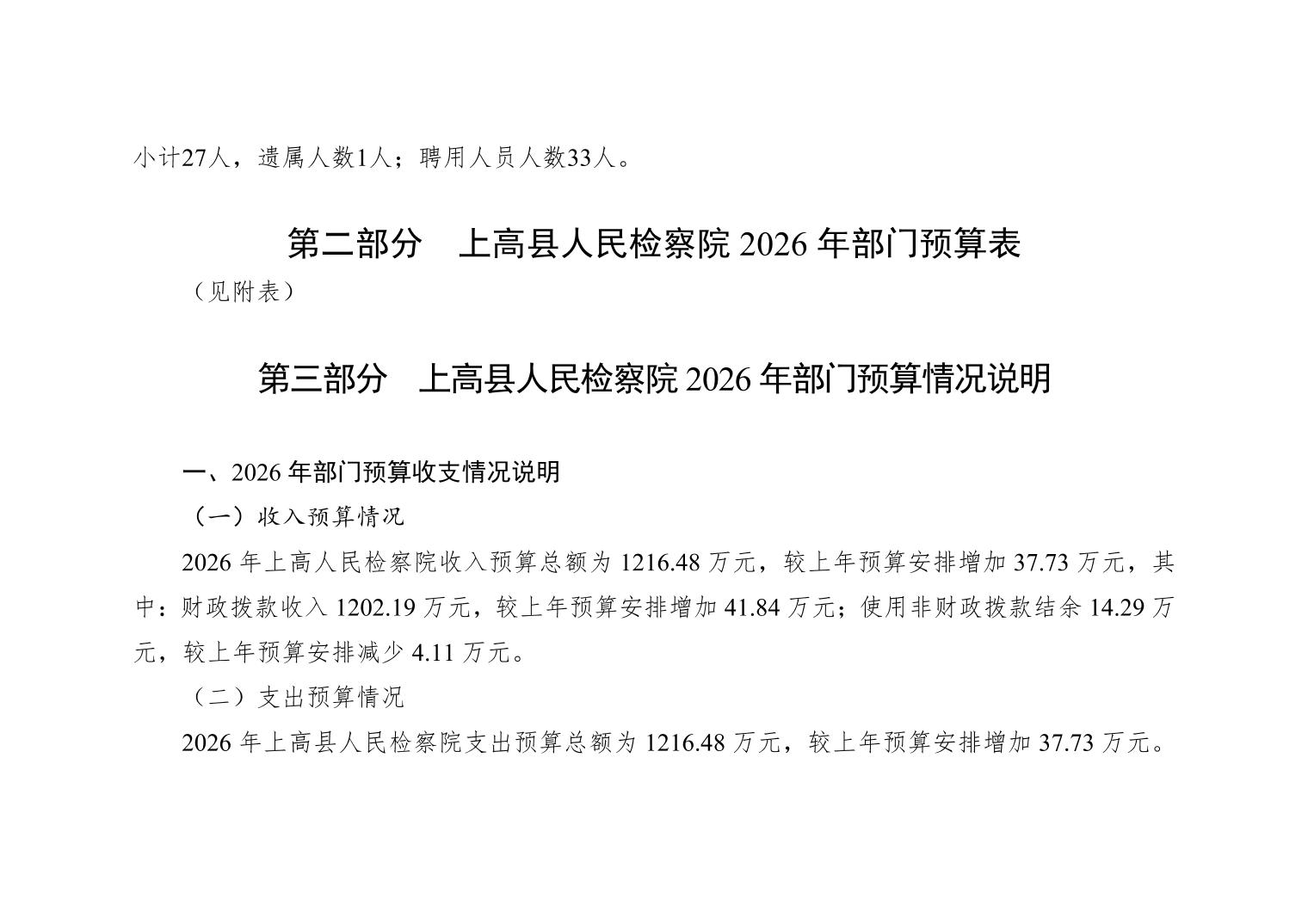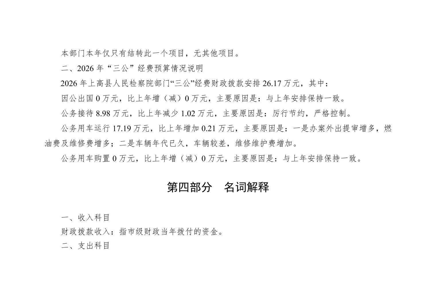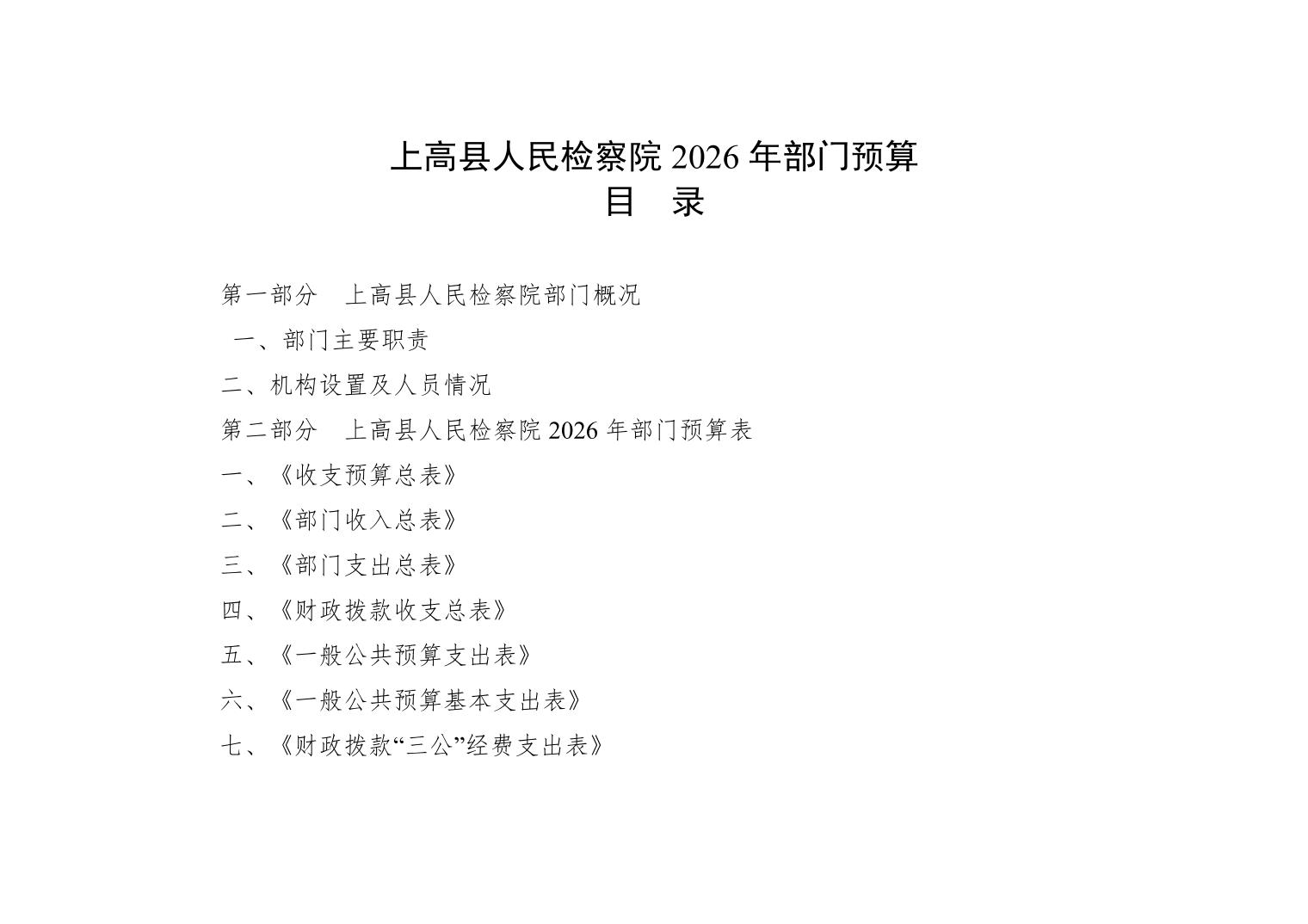 上高县人民检察院2026年部门预算公开
