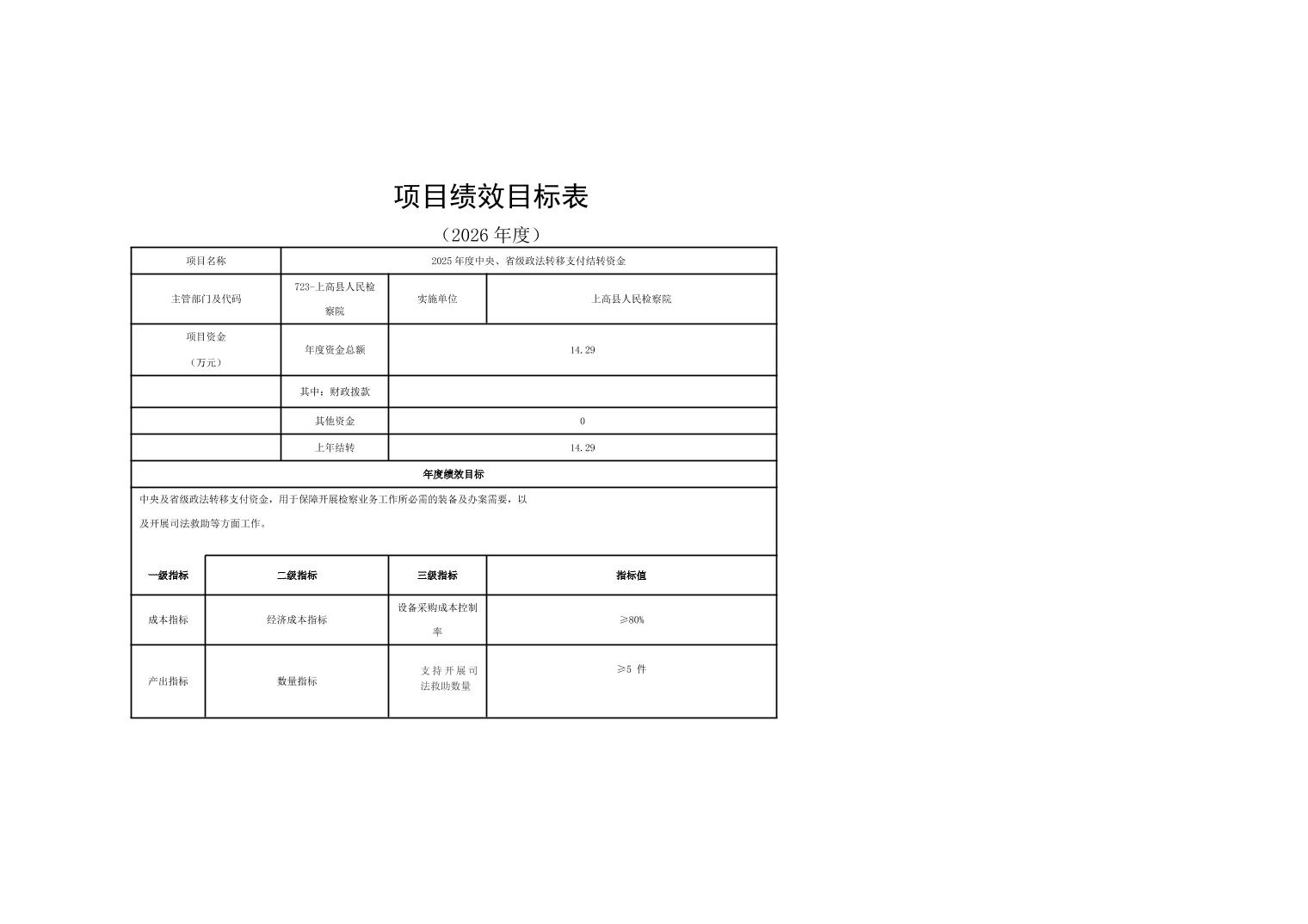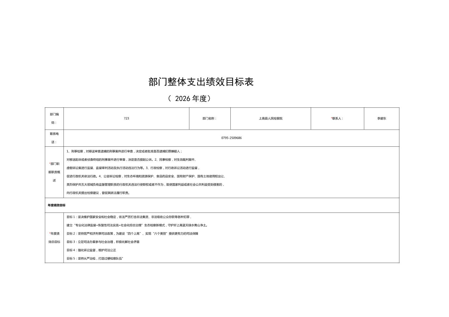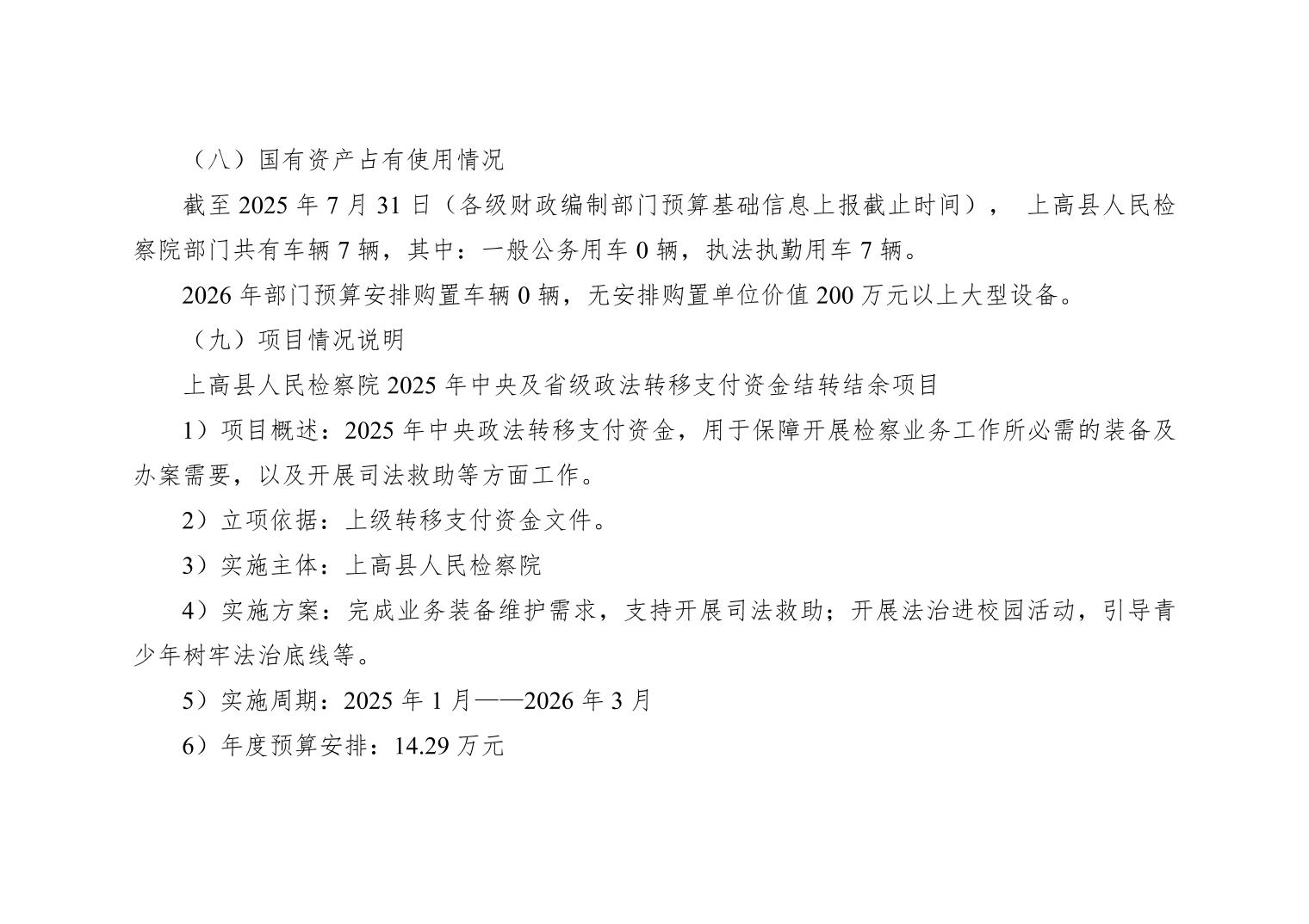 上高县人民检察院2026年部门预算公开
